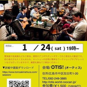 広島市のジプシージャズギター奏者 ニシウラトモアキさん主宰 ジプシー・スィングにフォーカスした セッション会です。 参加自由(有料1600円1ドリンク付き) スコアあります。 初心者からベテランまで ギター フルート、バ […] ...