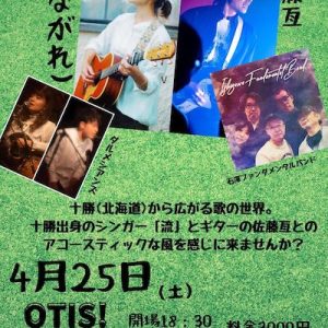今回、流 初の北海道 十勝でレコーディングしたアコースティックアルバムのレコ発となります!佐藤亙とツインギターで奏でる音楽に十勝の風を感じてください♪ open 18:30 / start 19:00 チャージ 3,00 […] ...